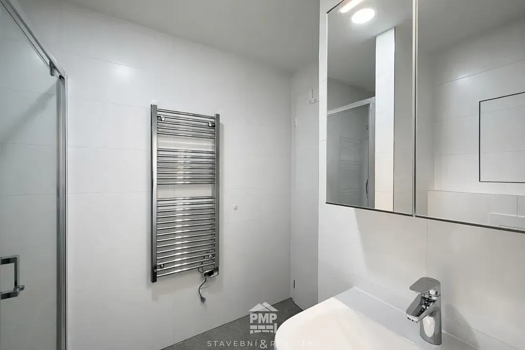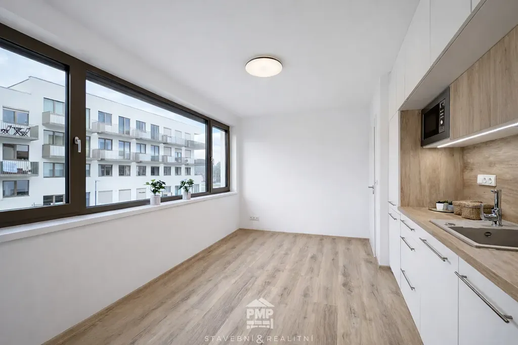 Byt o celkové ploše 44 m² zaujme především svým novým a vkusným vybavením. Kuchyňská linka s vestavěnými spotřebiči – indukční varnou deskou, troubou, myčkou, odsavačem par a nechybí ani lednice s mrazákem. Koupelna je vybavena sprchovým koutem, umyvadlem, toaletou a topným žebříkem. V celém bytě je podlahové vytápění, které zajišťuje příjemný tepelný komfort během celého roku. Komfort a soukromí bydlení doplňují vestavěné předokenní žaluzie. Byt se pronajímá bez nábytku, což dává novému nájemci možnost zařídit si interiér dle vlastního vkusu a potřeb. Interiér působí svěže a čistě a díky velkoformátovým oknům je byt krásně světlý.