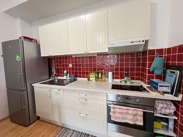Nabízíme k pronájmu byt o velikosti 2+kk (37 m2) v přízemí cihlového bytového domu v klidné lokalitě města Milovice. Byt byl v roce 2010 kompletně zrekonstruován – plastová okna, podlahové krytiny, kuchyňská linka atd. Vnitřní dispozice: chodba, obývací pokoj s kuchyní, ložnice, koupelna se sprchou a s WC. Byt je částečně vybaven, a to kuchyňskou linkou se sporákem, troubou, lednicí, jídelním stolem se židlemi rozkládací pohovkou, konferenčním stolkem, komodou, jednou šatní skříní a pračkou. K bytu náleží sklep nacházející se ve stejném podlaží jako byt a jedno parkovací stání před domem. Z bytu je příjemný výhled do zeleně a společné zahrady s posezením. Měsíční nájemné činí 12.000 Kč + zálohy na energie 5.300 Kč. Majitel požaduje vratnou kauci jednoho měsíčního nájmu se zálohou na poplatky tj. 17.300 Kč, poplatek RK za zprostředkování je 12.000 Kč.