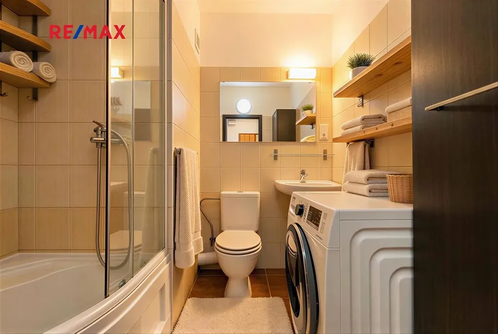 Byt se prodává kompletně zařízený: k dispozici je pohovka, vestavěná skříň v pokoji i předsíni, pračka v koupelně, kuchyňská linka vybavená troubou, lednicí s mrazákem. Komfort bydlení zvyšují také venkovní elektrické žaluzie.