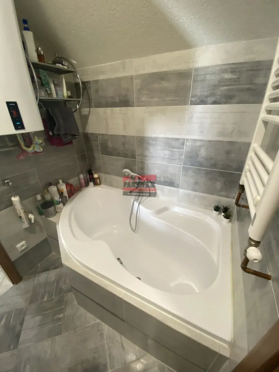 Dispozice bytu: pokoj s kuchyňským koutem včetně kuchyňské linky s varnou deskou a troubou, ložnice, koupelna s vanou a samostatná toaleta.