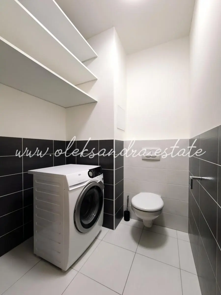 Byt je vybaven venkovními žaluziemi na všech oknech s dálkovým ovládáním, což zajišťuje maximální komfort i regulaci teploty v letních měsících. Součástí jsou také vestavěné skříně a knihovna s pracovním stolem vyrobené na míru.