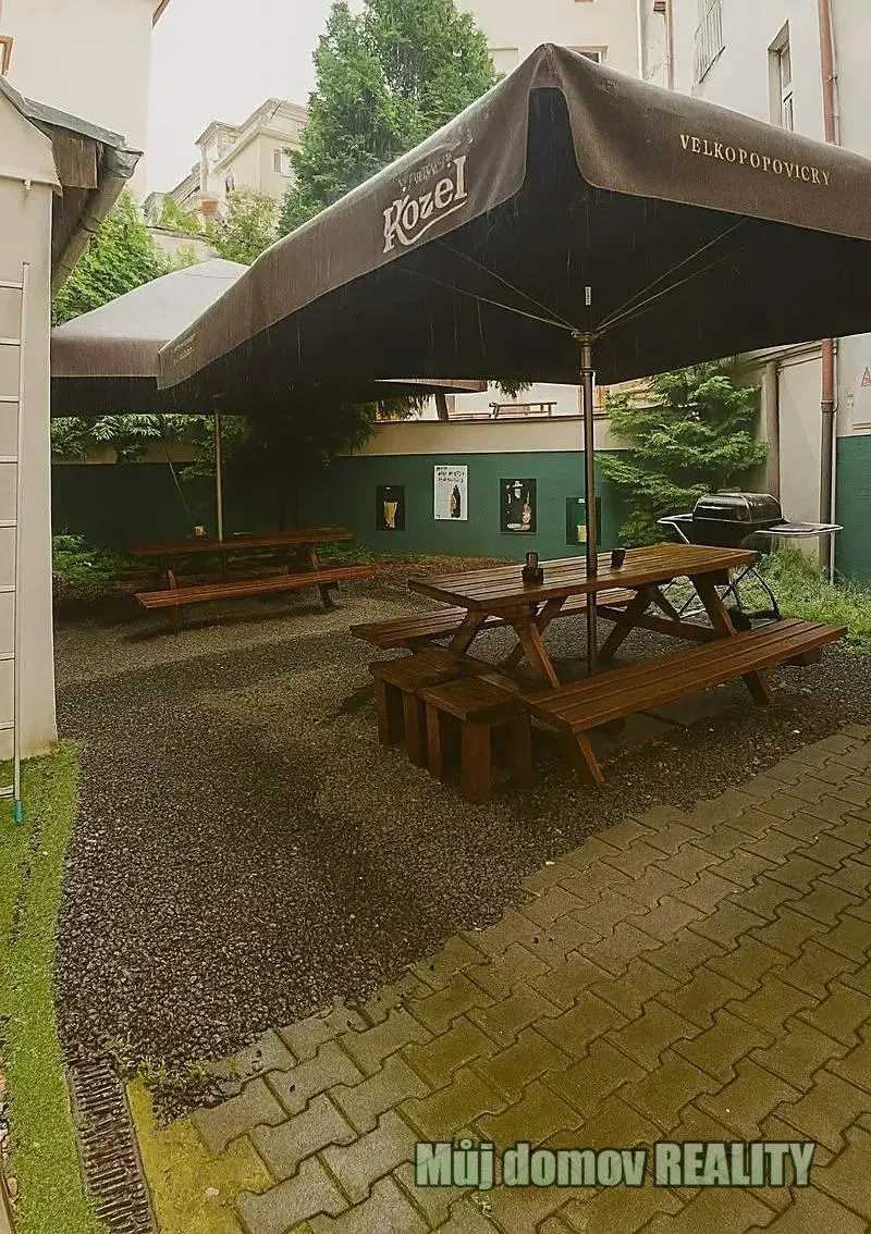 K dispozici je příjemná zahrádka orientovaná do klidného vnitrobloku, ideální pro letní sezónu a pohodové posezení hostů.