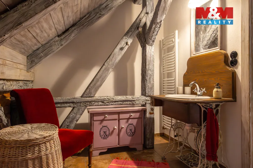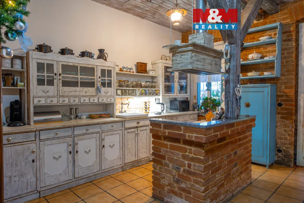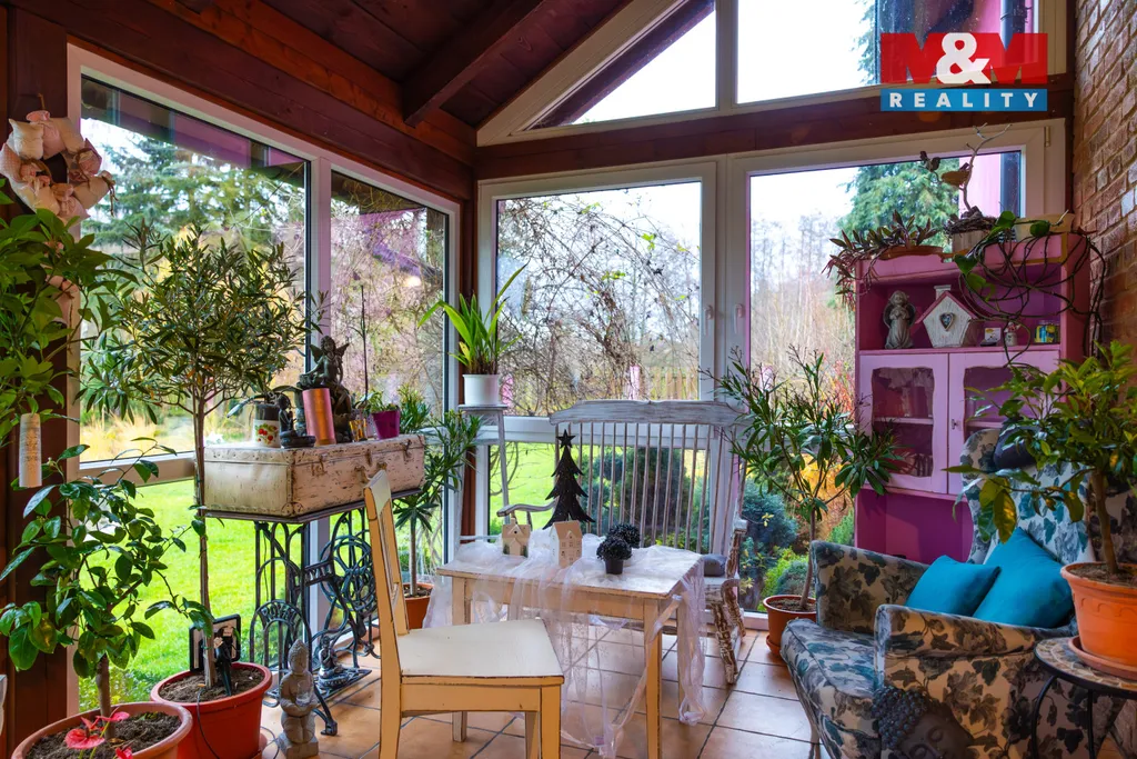Rozsáhlý pozemek nabízí upravené travnaté plochy, okrasné dřeviny a dostatek prostoru pro odpočinek i soukromí. Součástí je venkovní bazén a soukromý rybník.