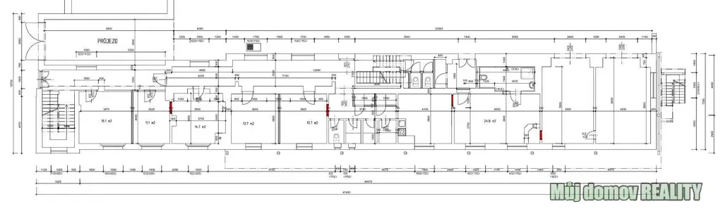 Budova je pronajímána bez vybavení nábytek a zařízení si nájemce zajišťuje sám.