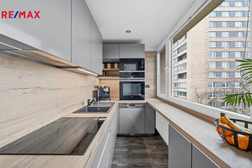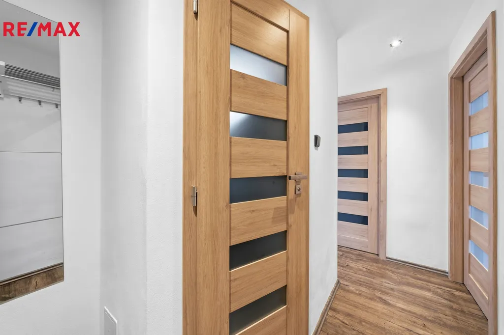 Byt prošel kompletní, velice zdařilou rekonstrukcí. Interiér je vybaven prostornou kuchyňskou linkou s kvalitními vestavěnými spotřebiči Siemens. Koupelna je společná s toaletou a je zařízena moderním a praktickým sprchovým koutem walk-in. Najdete zde vinylové podlahy a moderní obložkové dveře. Součástí prodeje je také kvalitní vestavěná skříň vyrobená na míru truhlářem, která v bytě zůstává. K bytu náleží sklepní koje.