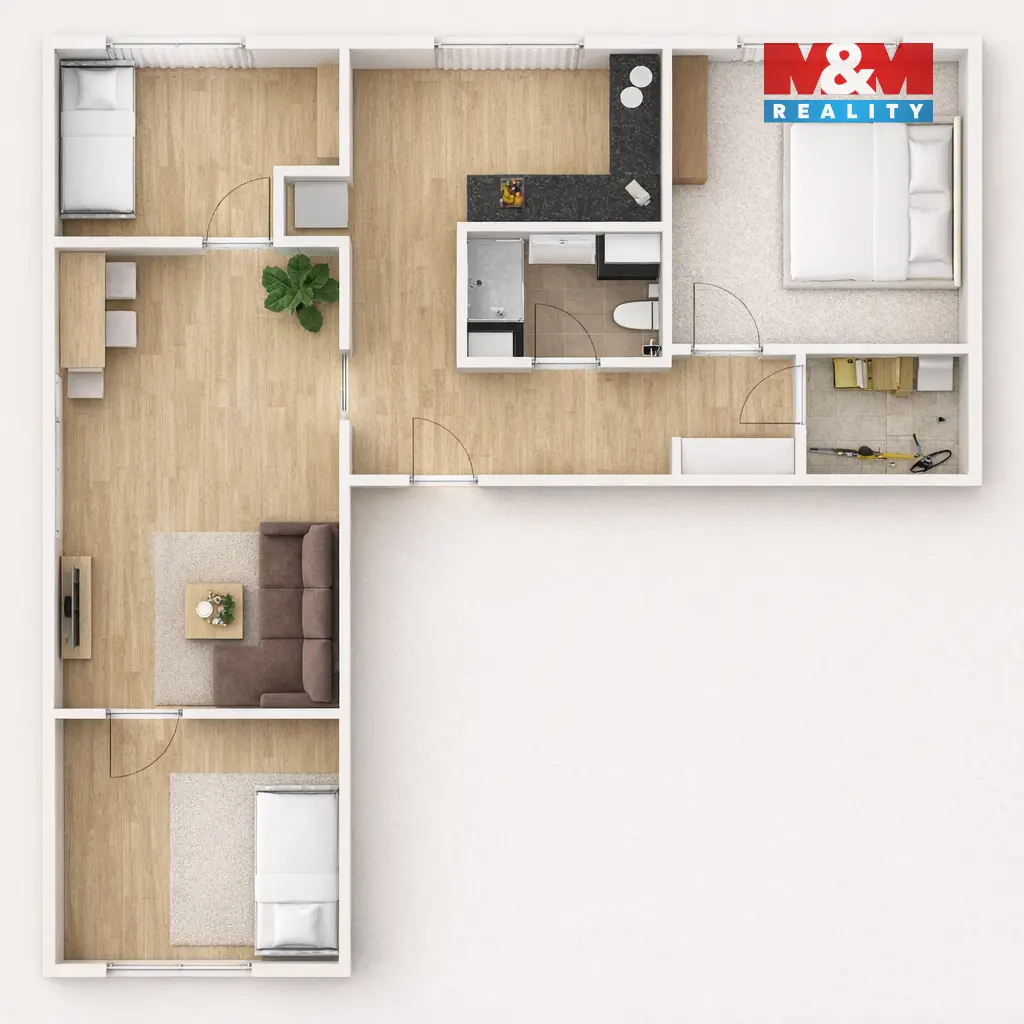 Nabízíme k prodeji světlý a prakticky řešený byt o dispozici 4+1 a podlahové ploše 70 m², který se nachází v 5. nadzemním podlaží panelového domu v žádané lokalitě Kladno – Kročehlavy. Velkou výhodou je zajímavé a funkční dispoziční řešení – dětské pokoje jsou situovány na opačné straně než ložnice, což zajišťuje dostatek soukromí pro všechny členy domácnosti. Byt prošel rekonstrukcí, byla provedena modernizace elektroinstalace, nové zděné jádro a kuchyňská linka, a je připraven k okamžitému nastěhování. K bytu dále náleží sklep (2 m²).