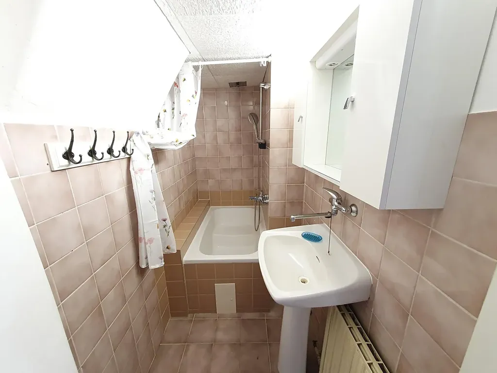 plně vybavená kuchyň (7m2), lednice, myčka, pračka, obývací pokoj (19 m2) vybaven nábytkem, 2 neprůchozí ložnice (14 a 17 m2), vstupní hala, koupelna s vanou a samostatná toaleta, topení - plynový kotel.