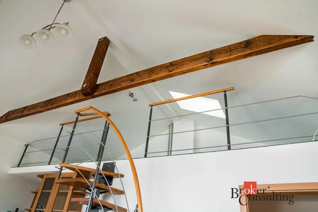 Umístění v posledním patře bez výtahu sice znamená více schodů, na druhou stranu nabízí výrazně více klidu, soukromí a příjemnou atmosféru bez rušivého provozu nad hlavou.
