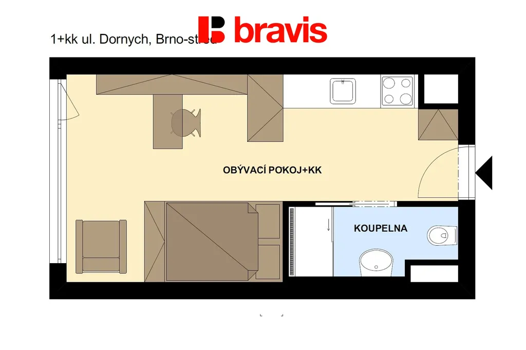 Moderní, bezpečné, metropolitní bydlení na dosah centra Brna. Tím vším a mnohem více je jednotka o velikosti 1+kk v rezidenčním domě na ulici Dornych v Brně.