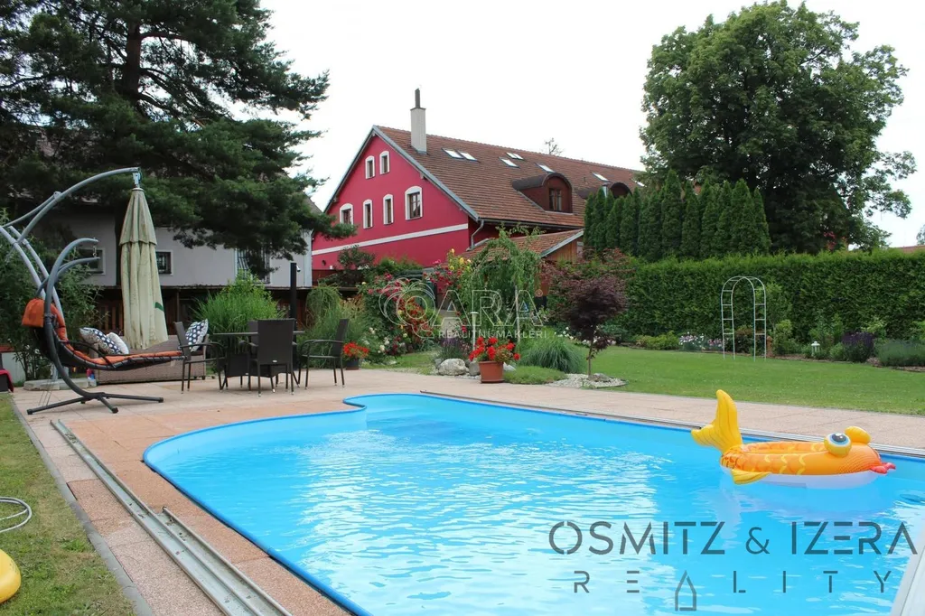 Zadní část zahrady tvoří samostatná parcela s krytým bazénem. Parcela o výměře 810 m2 má i samostatný přístup z obecní cesty. Lze využit pro výstavbu rodinného domu nebo rozšíření penzionu.