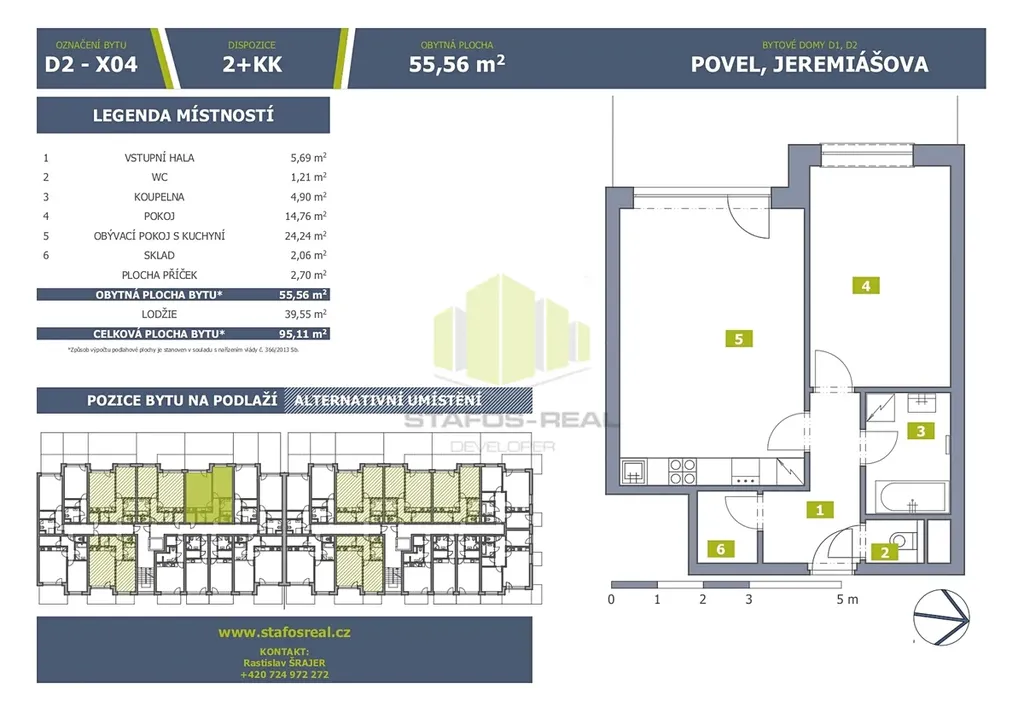 Kupte si nový byt od prověřeného a spolehlivého developera s garantovanou pevnou cenou bez navýšení a bez inflačních doložek. Využijte jedinečné příležitosti nechat si navrhnout a postavit byt přesně podle Vašich přání a potřeb. Společnost STAFOS-REAL působí na trhu od roku 2005, za tuto dobu úspěšně realizovala téměř tři tisícovky bytových jednotek a klientům poskytuje kompletní servis – vlastní výstavbu, výhradní prodej i služby vlastního hypotečního centra, které Vám zdarma zajistí vyřízení financování s připravenými výhodami.