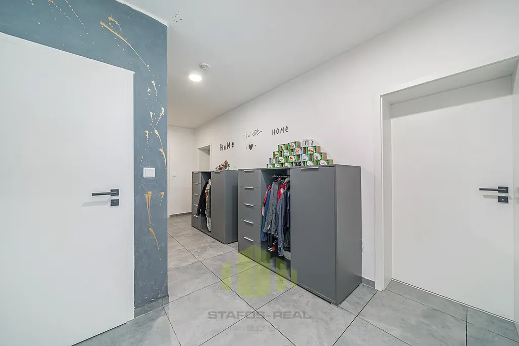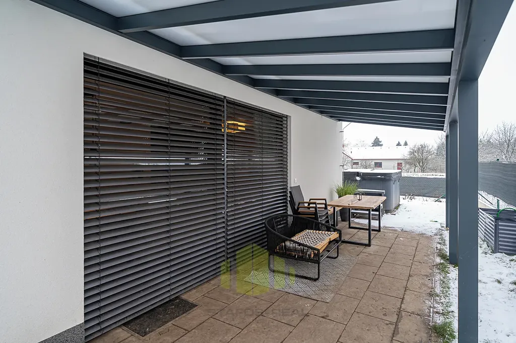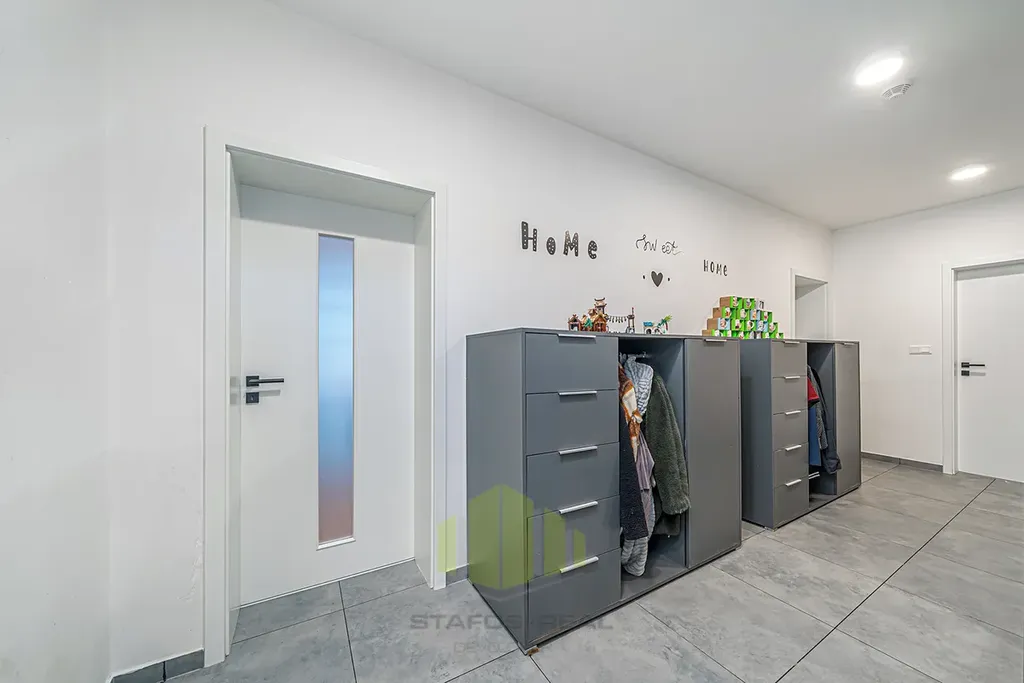 Hledáte moderní, komfortní bydlení v klidném prostředí obklopeném přírodou, a přitom s výbornou dostupností do okolních měst? Tento nadstandardně vybavený rodinný dům typu bungalov v obci Ústín splní vaše očekávání. Novostavba zkolaudovaná v roce 2023 se nachází v exkluzivní lokalitě "Za humny", mimo hlavní komunikaci, a nabízí nádherné výhledy na Jeseníky a Velký Kosíř. Díky omezené možnosti další výstavby se jedná o jedinečnou příležitost pro bydlení v klidu a soukromí. Obec se nachází mimo záplavové území a disponuje výbornou dopravní dostupností – MHD i autobusová zastávka jsou vzdálené jen 2 minuty chůze.