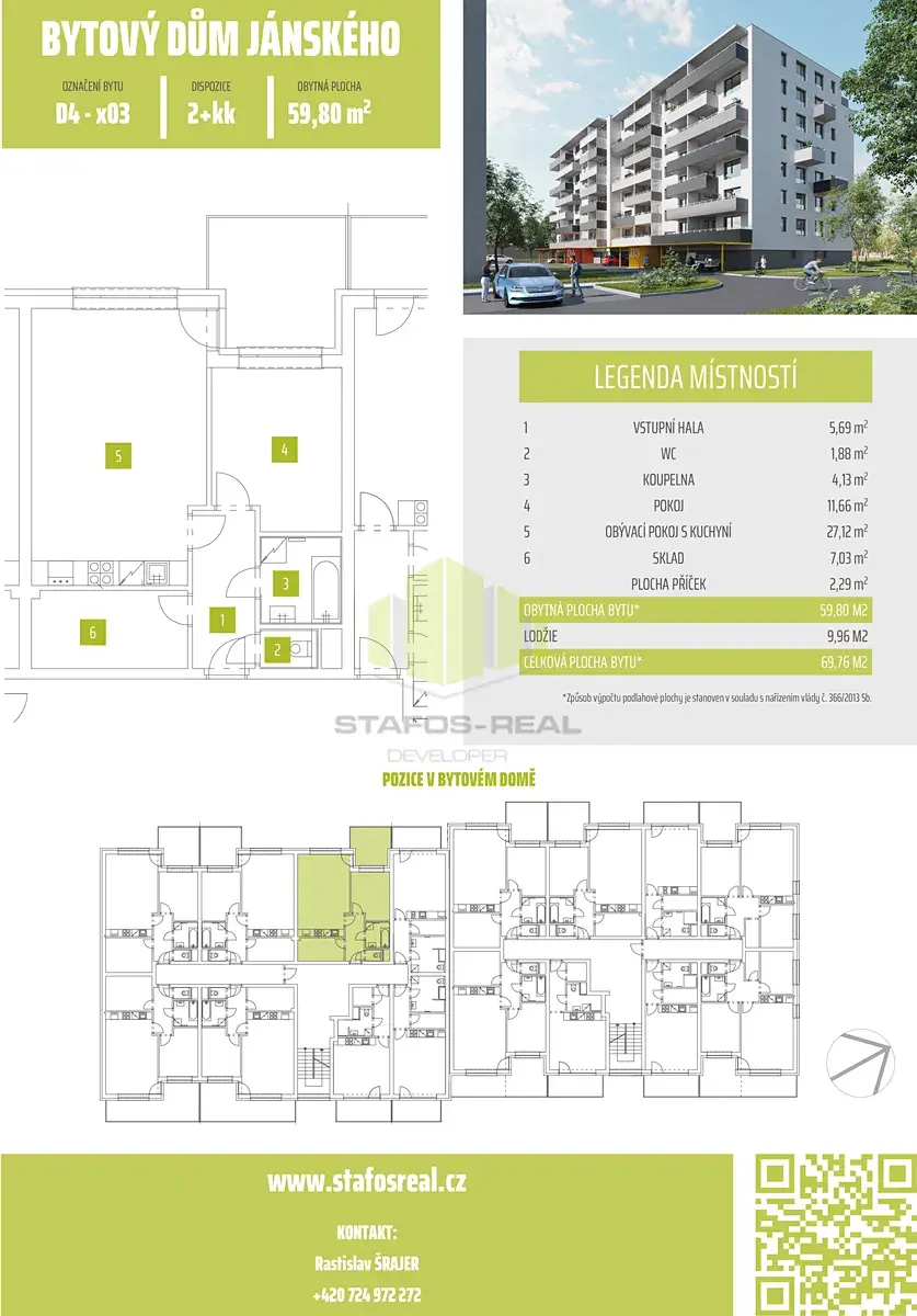 Začněte Vaší novou životní kapitolu bydlení a vychutnejte si radost z bydlení v zbrusu novém bytě. Prověřujeme evidenci exekucí, insolvencí a dluhů na zdravotním pojištění našich potenciálních nájemníků. Pro lepší představu o tomto bydlení vám doporučujeme shlédnout virtuální prohlídku, která vám také poskytne možnost změřit jakýkoliv rozměr tohoto bytu. Volné od listopadu/prosince 2025. Kompletní nabídku bytů v domě najdete na našich stránkách STAFOS-REAL.