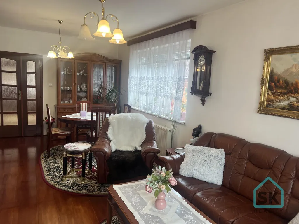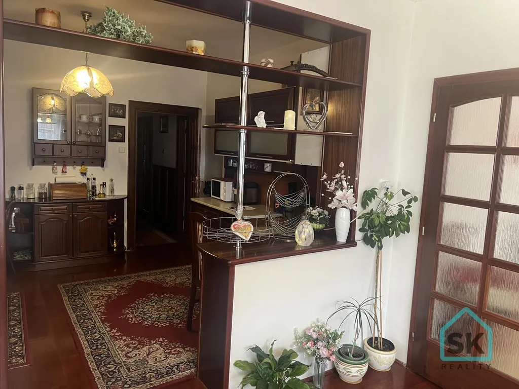 Prodej rodinného domu vč. částečného vybavení v Krnově na ulici Boční. V přízemí domu je zasklený balkon, vstupní obytná chodba, obývací pokoj s jídelnou a vstupem do zimní zahrady, kuchyně, další dva samostatné pokoje, koupelna s vanou a toaletou. Dům má dva vchody, druhým vstupem ze zahrady je vstupní chodba, po schodech nahoru v mezipatře je malý pokoj, v patře potom byt 2+1, kde je zasklený rohový balkon, koupelna se sprchou a toaletou. Dům je celopodsklepen, v těchto prostorách je kotelna (kotel na tuhá paliva, bojler na ohřev vody, plynový kotel), prádelna, toaleta, letní kuchyně, komora, velká dílná. V suterénu je dále garáž, pro 2 auta, vjezd z hlavní cesty. Voda čerpána z řádu (na zahradě i studna s užitkovou vodou), vytápění ústřední na tuhá paliva, plynové a v jídelně lokální krb. Střecha pultová, vloni částečně nová hydroizolace, krytina IPA. V domě jsou krásné dřevěné podlahy, dveře a schodiště, plastová okna. Hlavní rekonstrukce a přístavba domu byla v r. 2002. Dům je zateplen polystyrenem. Na zahradě je skleník, pergola, altán, bazén. Dům nabízí klidné bydlení s dobrou dostupností do centra, do obchodu, školy atd. Financování zajistíme.