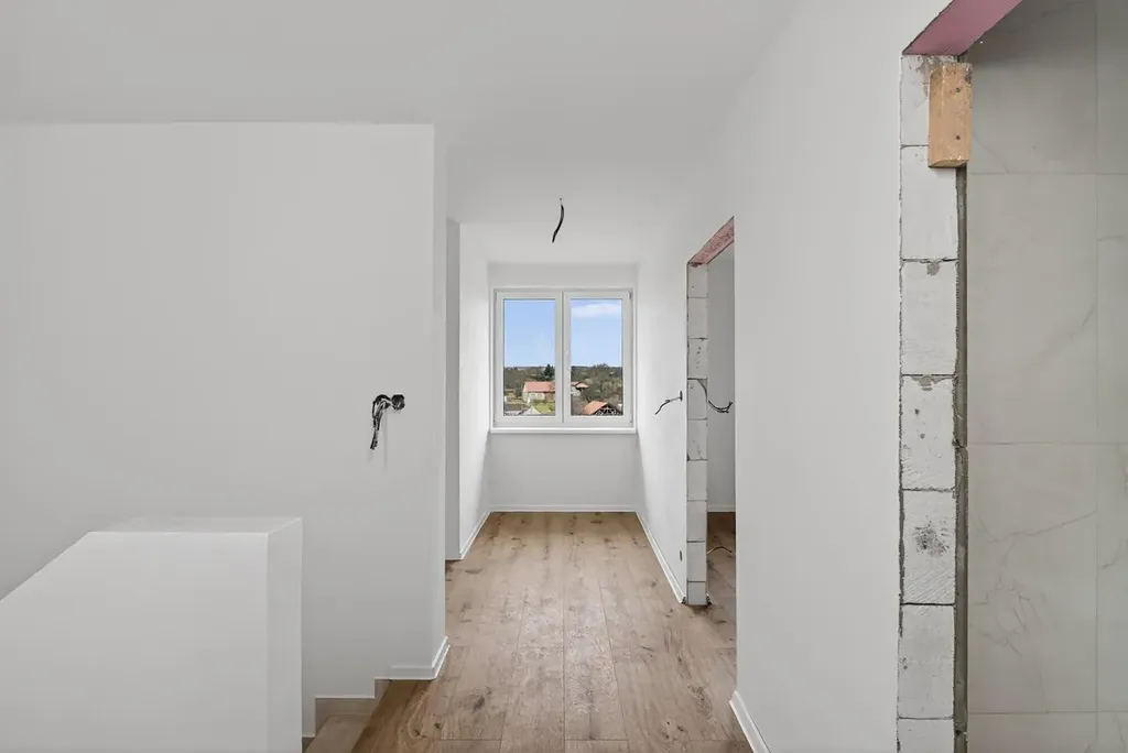 Dům je nabízen po kompletním dokončení interiéru (lepený vinyl, keramická dlažba, obložkové dveře), bez kuchyňské linky tu si nový majitel může zvolit dle vlastních představ.