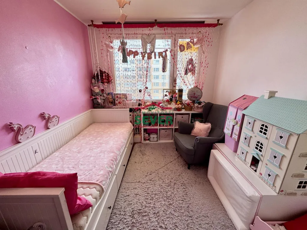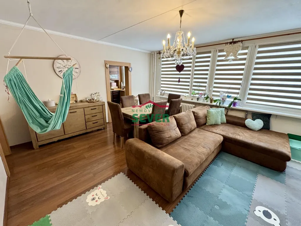 Nemovitosti SEVER vám zprostředkují koupi bytové jednotky s dispozicí 4+1 s lodžií v osobním vlastnictví v Mostě v ul. V. K. Klicpery. Bytová jednotka s plochou 83 metrů čtverečních se nachází ve třetím nadzemním podlaží panelového domu s eurovýtahem, situovaná v klidné části města. Byt prošel kompletní rekonstrukcí a skládá se z předsíně, chodby, dvou dětských pokojů, ložnice s vlastní šatnou a vstupem do lodžie, společně řešené koupelny s toaletou, kuchyně a obývacího pokoje propojeného s jídelním koutem. Rekonstrukce bytu zahrnuje elektroinstalaci v mědi, rozvody vody a odpadů, zděné jádro se sociálním zařízením v keramickém obkladu, kuchyňskou linku s vestavěnými spotřebiči, podlahy v celém bytě, snížené stropy s bodovým osvětlením v chodbě a koupelně, dřevěné obložení radiátorů v kuchyni, vestavěné skříně v dětských pokojích a ložnici, interiérové dveře a rolety den/noc v obývacím pokoji. Nadstandardem bytu je koupelna vybavená vanou i samostatným sprchovým koutem. K bytu náleží sklepní kóje. Dům, ve kterém se byt nalézá, prošel revitalizací fasády včetně zateplení, střechy, oken, vchodových dveří a výtahů. K domu náleží dětské hřiště hned za domem. Veškerá občanská vybavenost je k dispozici v blízkém dosahu, centrum města vzdálené pouze 7 minut jízdy automobilem. Parkování je možné přímo u domu. V případě zájmu vám zajistíme optimální variantu financování na tuto nemovitost za zvýhodněných podmínek pro naše klienty.