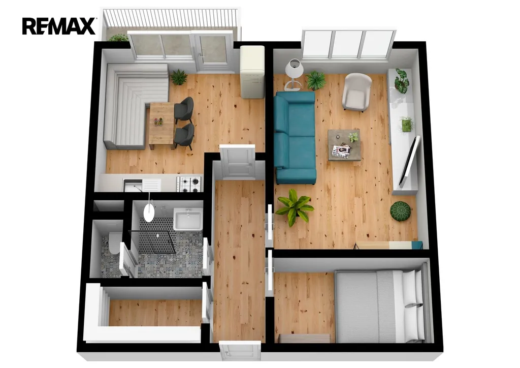 Samotný byt prošel kompletní rekonstrukcí v roce 2009 a nabízí praktickou dispozici. Byt je dispozičně řešený jako kuchyň s jídelnou ze které je vstup na lodžii, prostorný obývací pokoj, menší místnost bez oken, která může sloužit jako ložnice nebo šatna, vstupní chodba, kde je vstup do komory a koupelny se sprchovým koutem společně s WC. Kuchyň je prostorná s místem pro jídelní stůl, výhodou je přímí vstup na lodžii. Obývací pokoj je dostatečně prostorný pro velký gauč a případně pracovnu nebo skříň. Pokoj bez okna je o výměře 7,76 m² a využít jde libovolně.