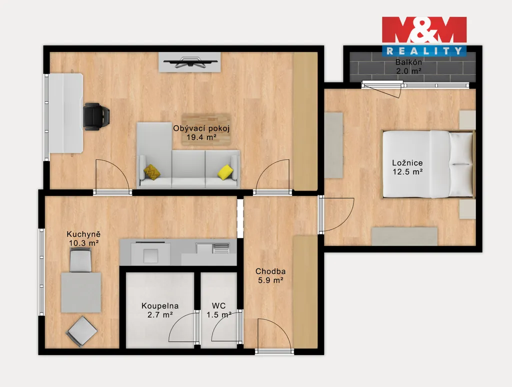 Byt nabízí praktickou dispozici:
