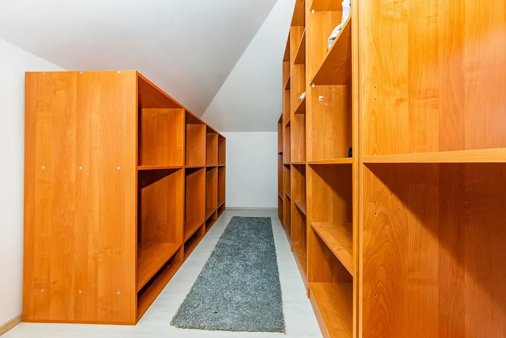 Samostatně stojící dům se dvěma nadzemními podlažími a jedním podzemním podlažím nabízí více než pět pokojů, dvě koupelny, domácí saunu a posilovnu, což zaručuje komfortní bydlení pro každou početnou rodinu.