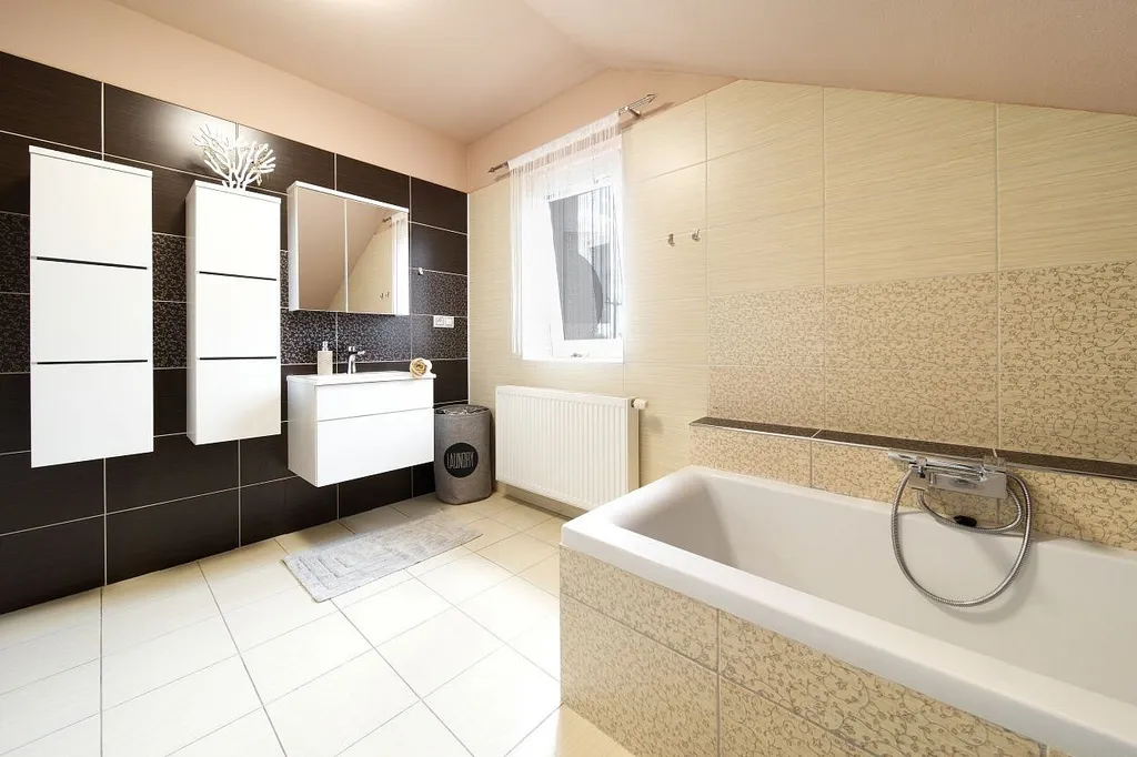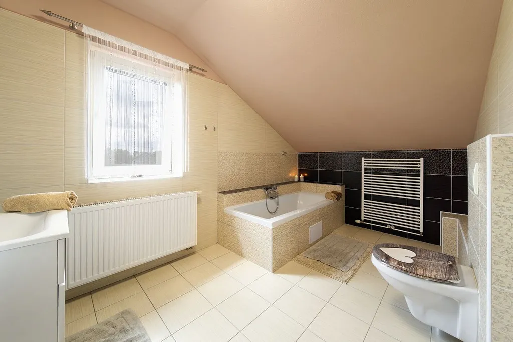 V 1. patře jsou k dispozici tři pokoje. Koupelna s vanou a toaletou.