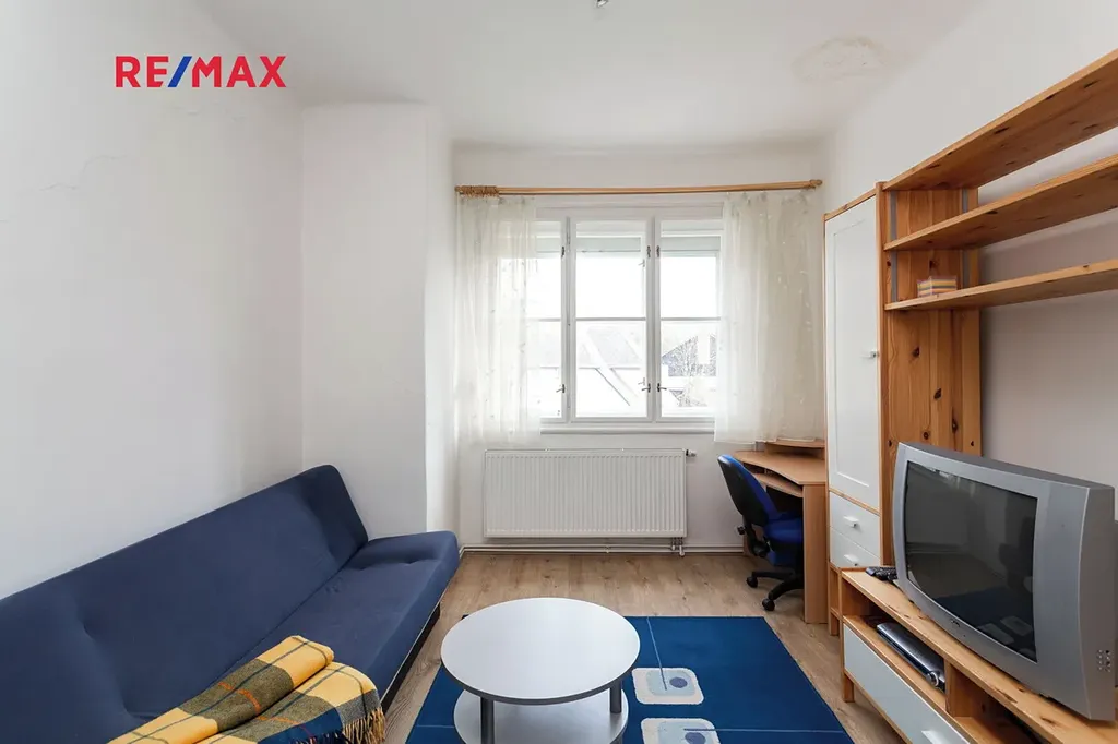 Dispozice pěti podlažního domu z roku 1932: 7 bytových jednotek s balkony. I k rekonstrukci. Venkovní terasa. Samostatná garáž, možnost výstavby garážových stání.