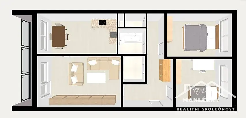 Bytová jednotka o dispozici 3+1 s lodžií ve druhém patře revitalizovaného panelového domu.