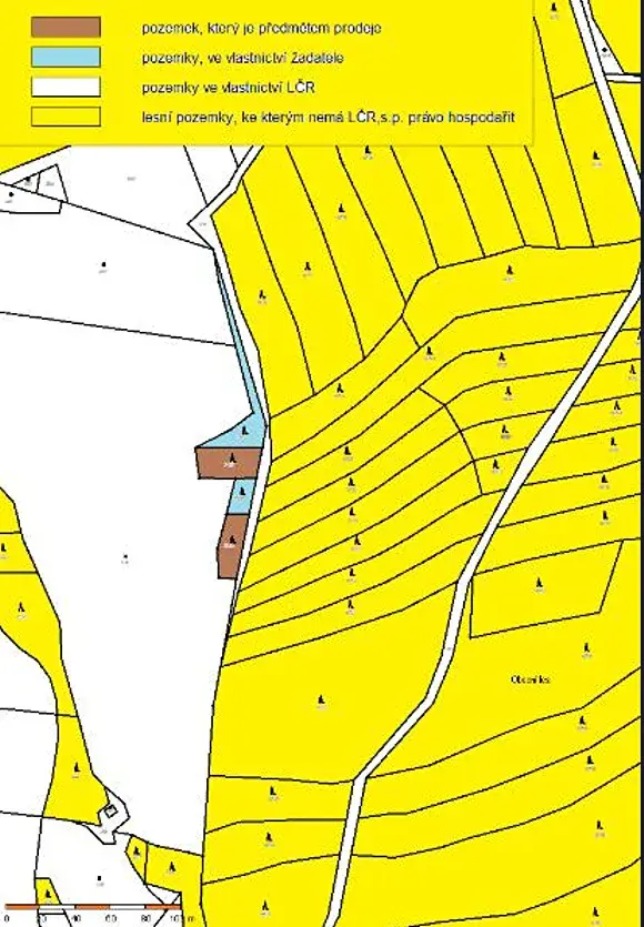 Jedná se o prodej 2 lesních pozemků parc. č. 778/37 o výměře 622 m2 a parc. č. 778/38 o výměře 480 m2 malé výměry, obklopené pozemky jiných vlastníků, a nachází se na nich pouze několik vzrostlých smrků a bříz