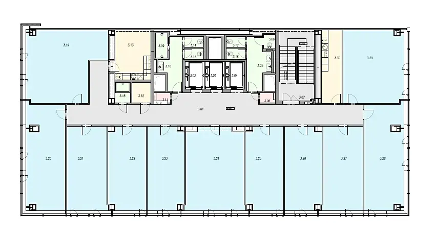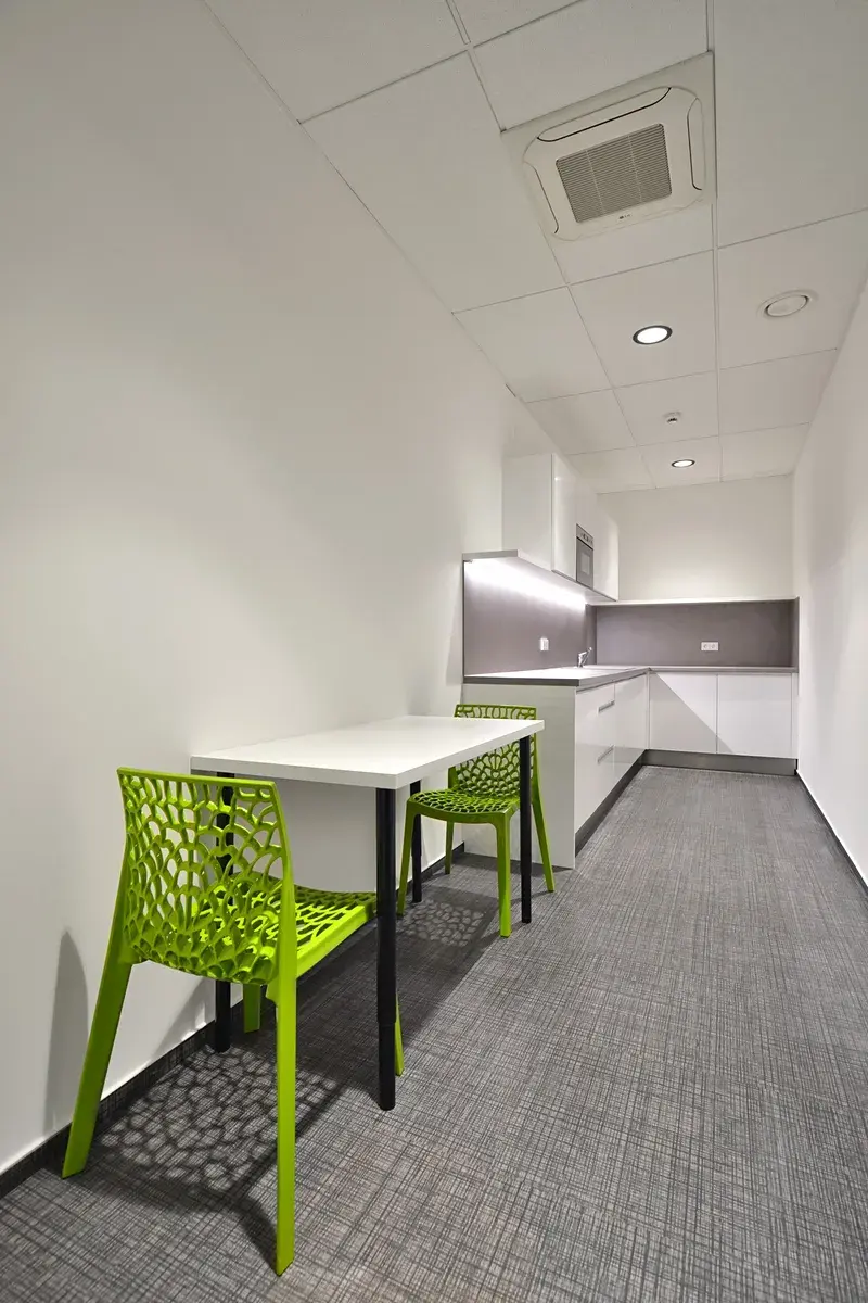 Můžete očekávat jednotlivé kanceláře různých výměr, s možností vysokorychlostního internetu, klimatizací a moderní vzduchotechnikou s dostatkem denního světla. Parkování pro zaměstnance i návštěvníky je možné přímo v areálu, areál má výbornou dopravní dostupnost.