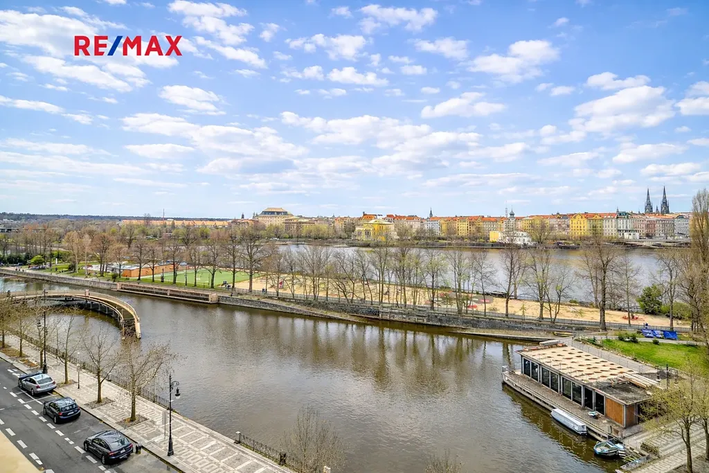 Nabízíme k prodeji jedinečný, úpravami nedotčený, aristokratický byt ve 4. patře domu v Praze, na Janáčkově nábřeží 35, s výhledem na Národní divadlo, Žofín, Mánes a historické centrum Prahy. Všechny 3 pokoje mají okna s výhledem na Vltavu a protější břeh.
