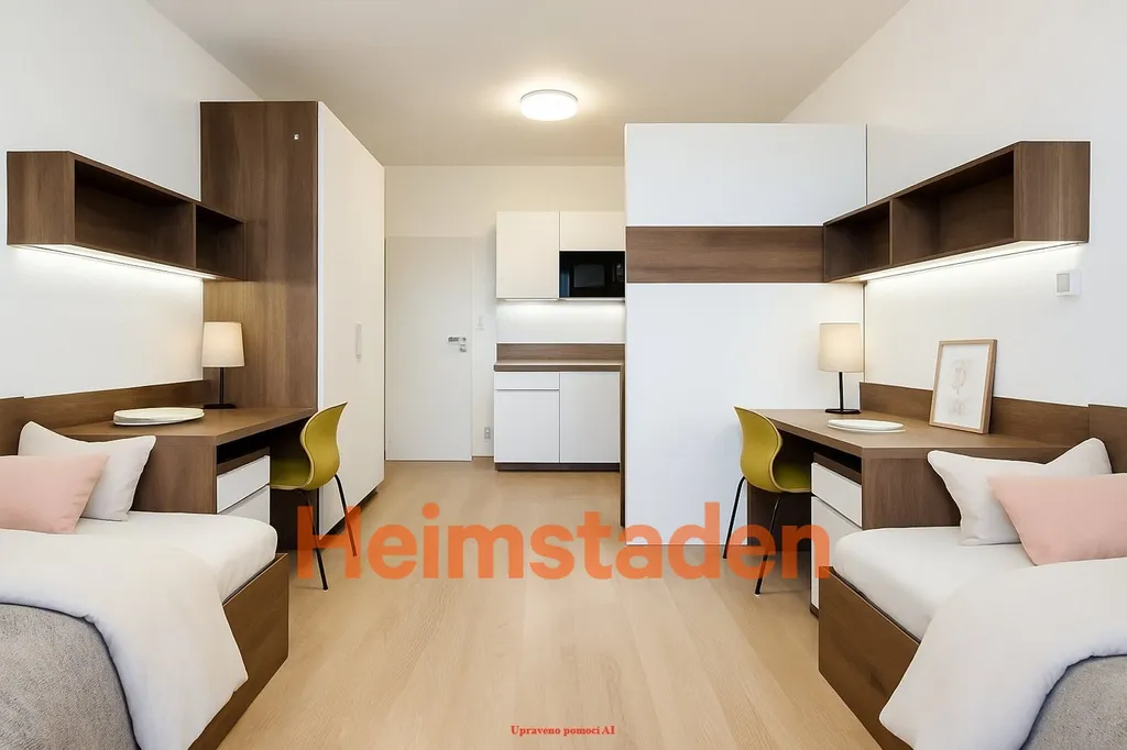 Interiér bytu je navržen tak, aby poskytoval maximální pohodlí i funkčnost. Obytný prostor je vybaven dvěma jednolůžkovými postelemi, které lze jednoduše srazit k sobě a vytvořit tak prostorné dvoulůžko. Moderní kuchyňská linka disponuje spotřebiči včetně lednice a varné desky. Koupelna je elegantně řešená se sprchovým koutem, umyvadlem a toaletou. Byt se pronajímá kompletně zařízený, takže se můžete okamžitě nastěhovat bez nutnosti dalších investic.