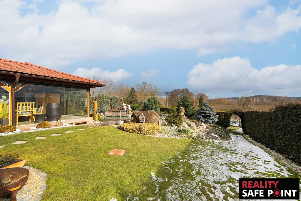 - samostatná vytápěná zahradní místnost s kuchyňským koutem (22 m²) – přístupná samostatným vstupem ze zahrady, vhodná jako letní kuchyně, společenská místnost či zázemí pro hosty.