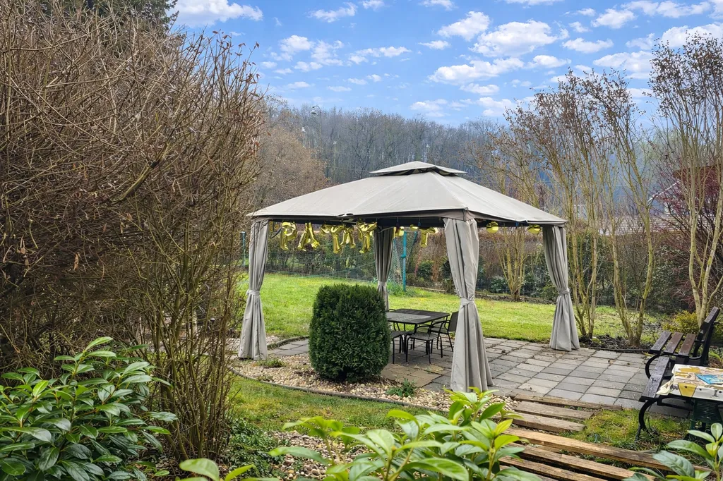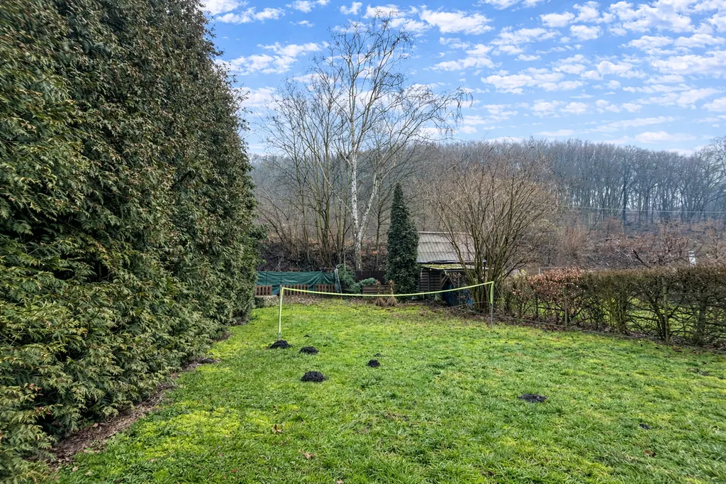 Na pozemku se nachází prostorná plechová garáž a rovinatá zahrada vhodná pro odpočinek, zahradničení i rodinné aktivity.