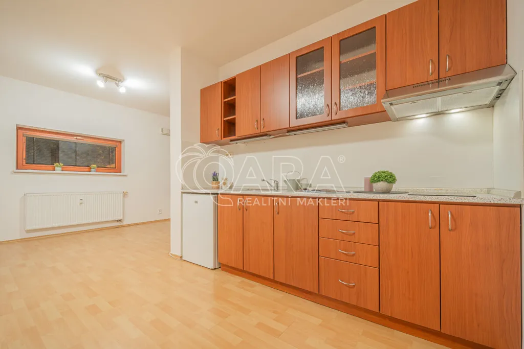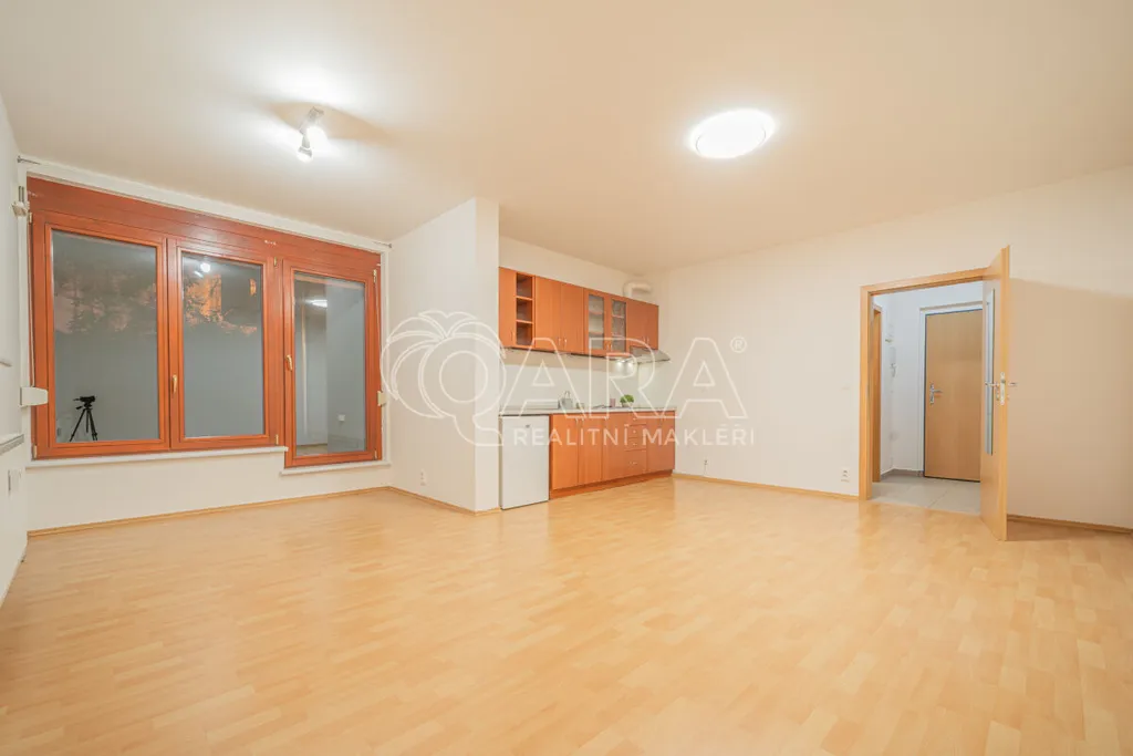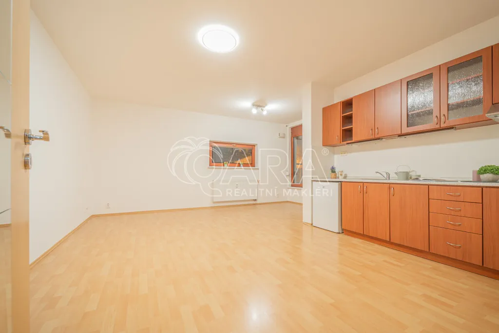 Byt se nachází v přízemí bytového domu z roku 2006. Dispozice je velmi praktická a efektivně využívá každý metr. V předsíni je velká šatní skříň a vstup do koupelny se sprchovým koutem a toaletou. Hlavní obytná místnost nabízí kuchyňský kout a dostatek prostoru jak pro spaní, tak pro obývací část.