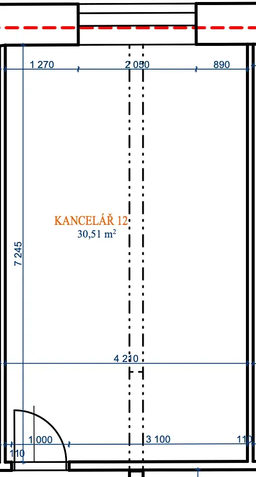 Dovolujeme si Vám nabídnout k pronájmu kancelářské prostory, které jsou v prvním patře kancelářské budovy. Tyto prostory se nacházejí ve velmi dobrém stavu a jsou připraveny k užívání od 1. března 2026. Nabízená kancelář má užitnou plochu 30 m².