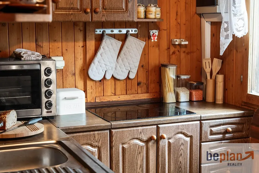 Užitná plocha je 41m2, součástí je obývací pokoj, ložnice, samostatná kuchyně a koupelna. Z obývacího pokoje navazuje zastřešená terasa s posezením. Výhodou je obytný domeček na zahradě, kde je palanda a poskytuje tak další dvě místa k přespání. Pozemek má 462m2 a nachází se na něm parkovací stání a pergola.
