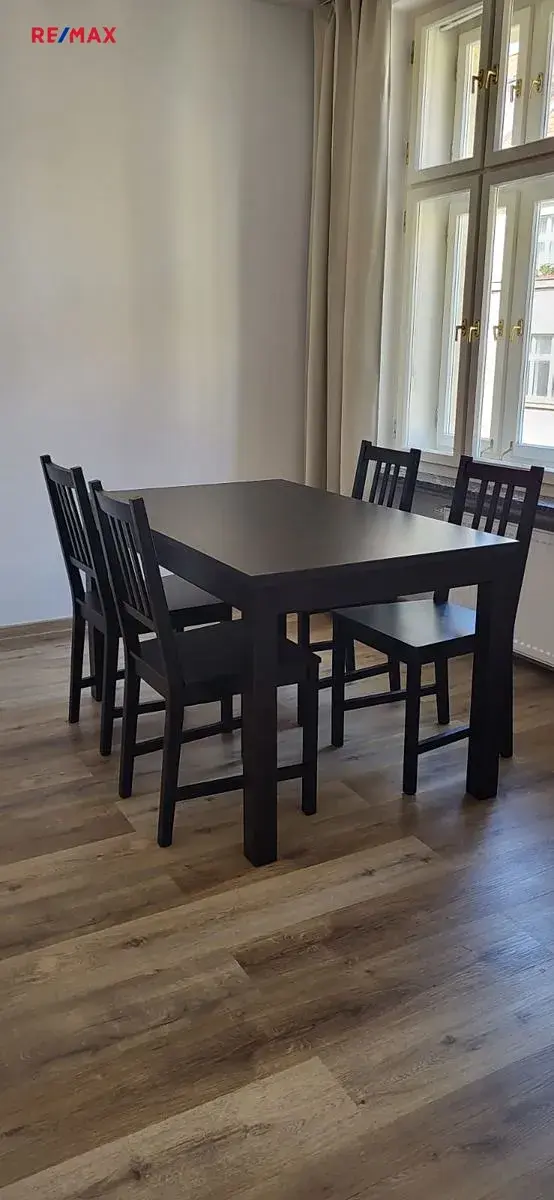 Dispozice: vstupní předsíň, kuchyň s jídelním koutem a prostorný pokoj. Koupelna je společná s toaletou. Kuchyň je nově vybavena kuchyňskou linkou a spotřebiči (indukční deska, pečící trouba, myčka, lednice s mrazákem, mikrovlnná trouba). Byt je po rekonstrukci, bíle vymalován, podlahy kombinace plovoucí podlahy a dlažby. Okna jsou s izolačními dvojskly, obě hlavní místnosti orientovány do klidné ulice.