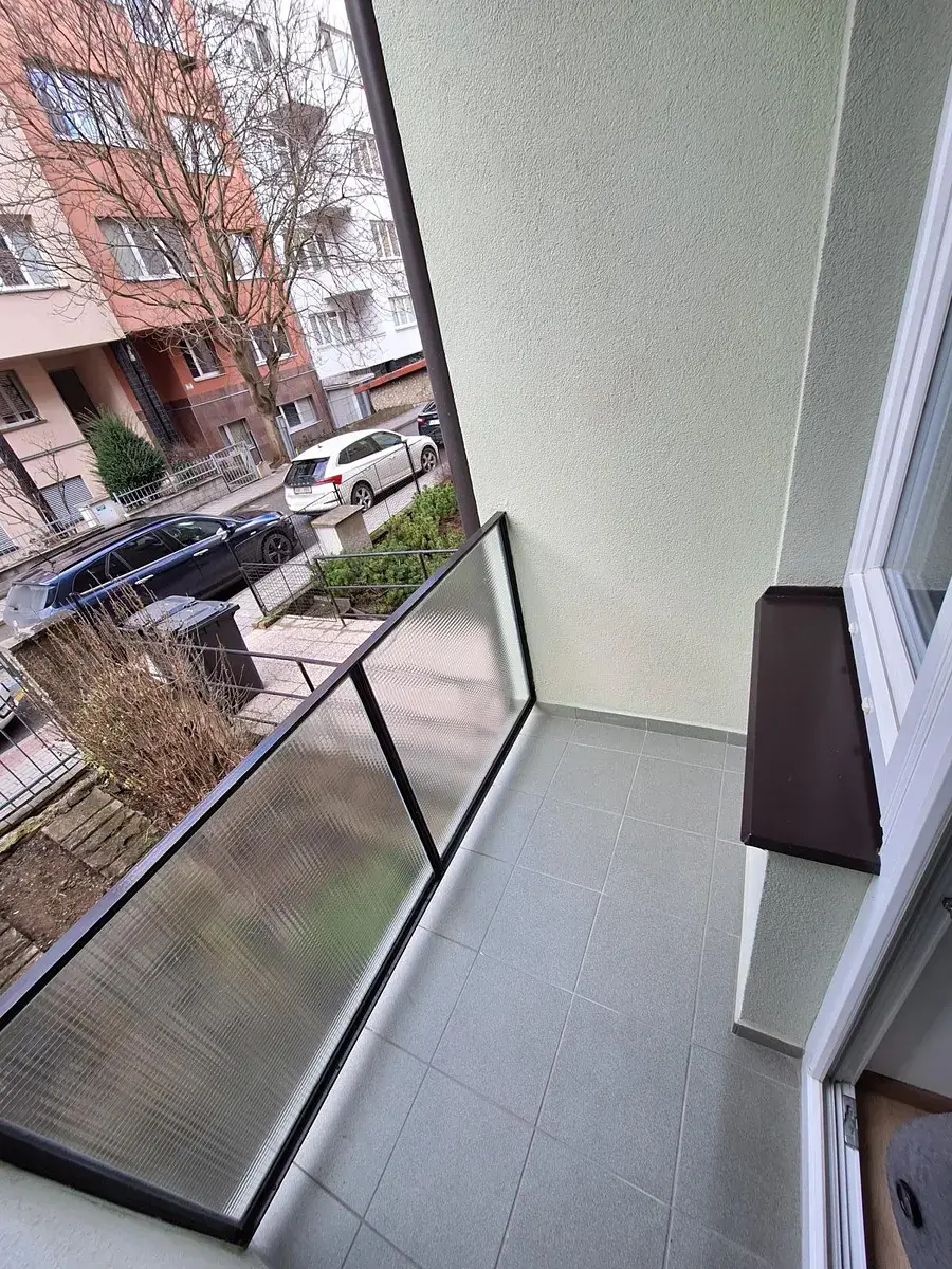 Na opačné straně bytu se nachází útulná ložnice s vestavěnou skříní a menší šatnou, která poskytuje nadstandardní úložný prostor. K ložnici náleží také druhý balkon. Samozřejmostí je elegantní koupelna se sprchovým koutem a samostatná toaleta. Po dohodě je možné využívat také zahradu.