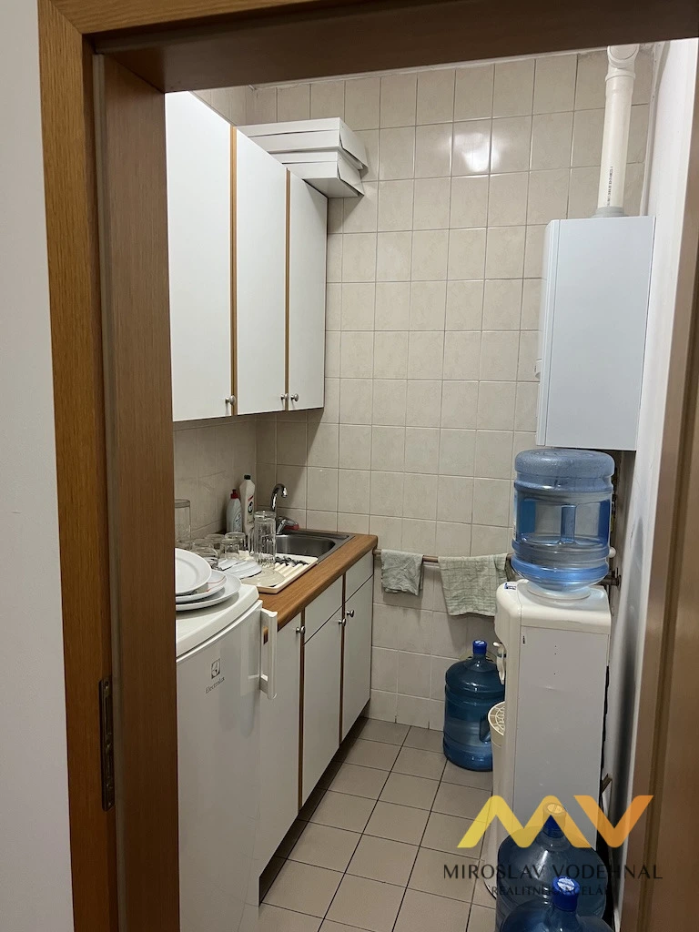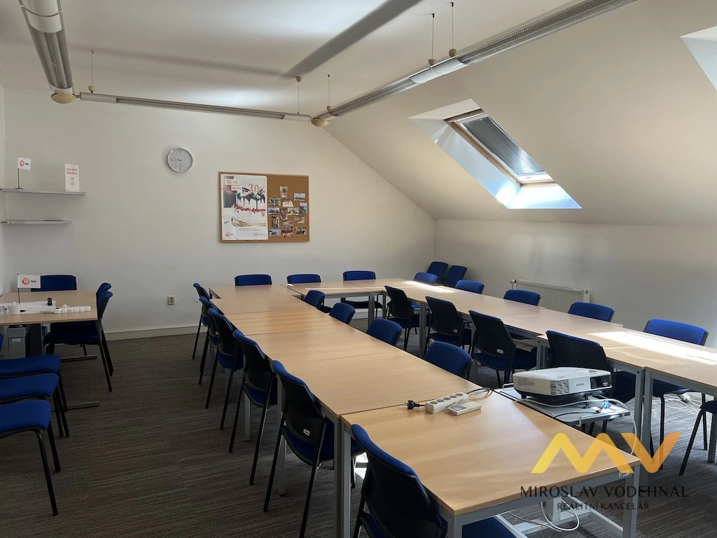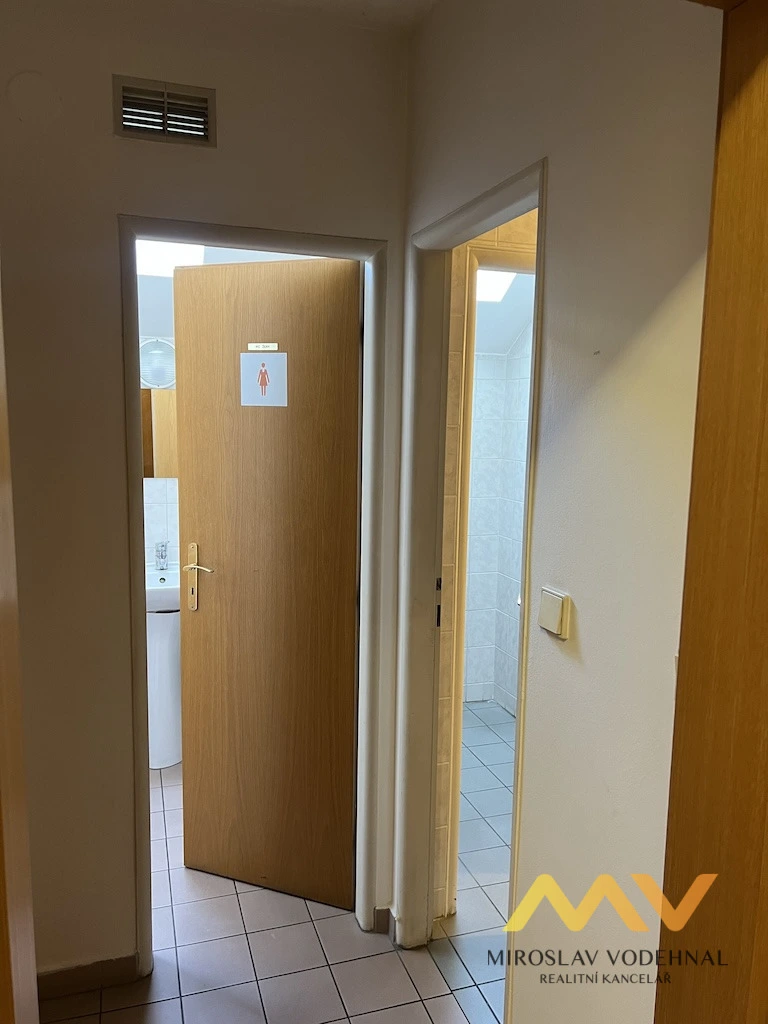 Dispozici tvoří tři samostatné kanceláře, z toho jedna velká a vhodná jako jednací (konferenční) místnost, dále zázemí v podobě pánských a dámských toalet, kuchyňky a úklidové komory. Prostory jsou umístěny v udržovaném zděném domě, který působí reprezentativně a vhodně pro firemní zázemí.
