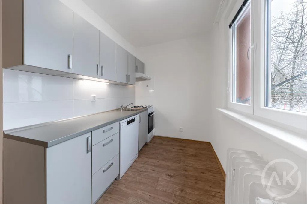 - slušná kuchyň v neutrálních barvách, pěkná koupelna a myčka s pračkou je v bytě připravená na každodenní využití,