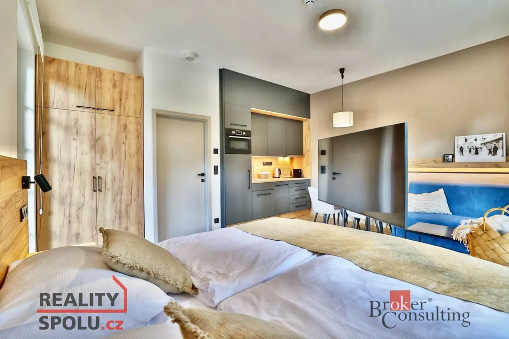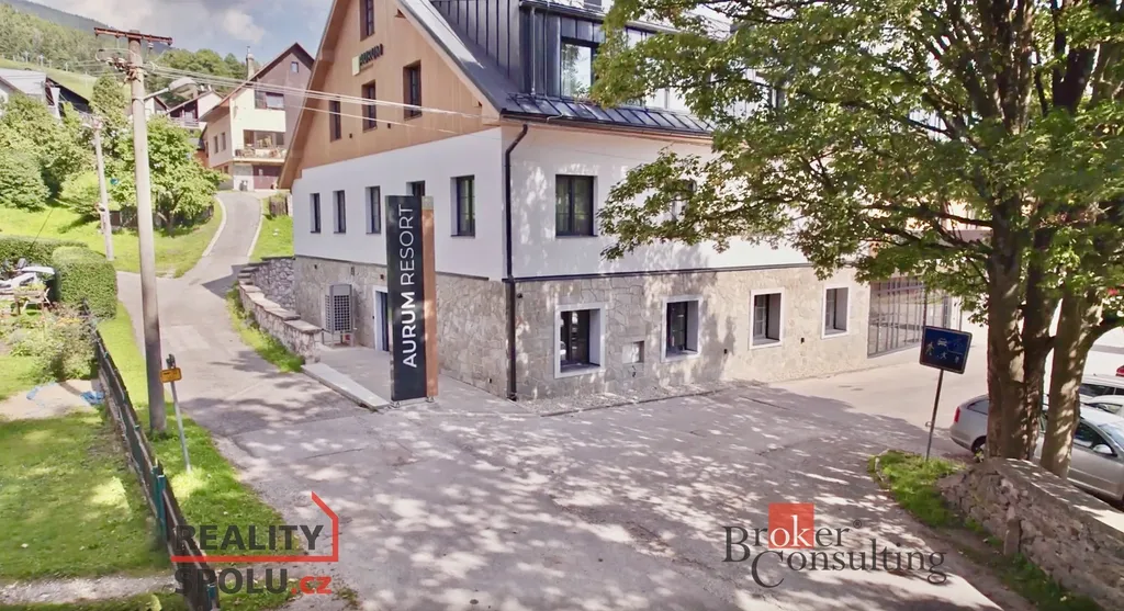 Nabízíme ke koupi luxusní, nově postavený, kompletně vybavený apartmán 1+kk o ploše 39,40 m² s 23m² balkonem v prestižní Rezidenci Aurum v Černém dole, v srdci Krkonoš.