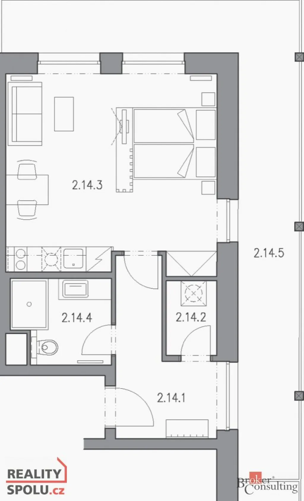 - prostorný balkón 23,43 m²