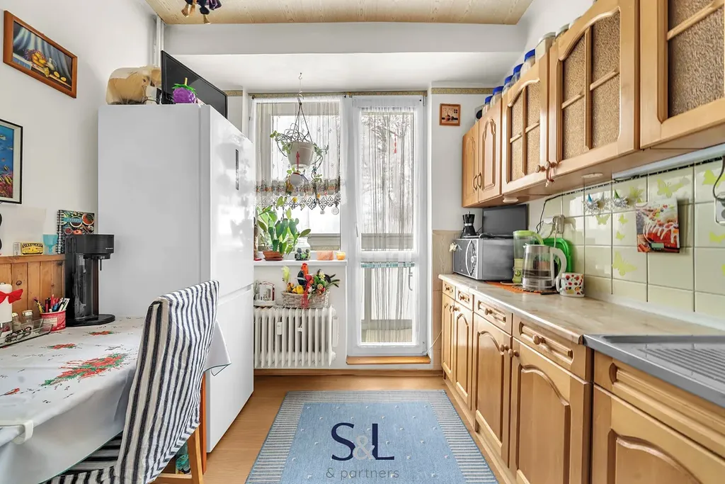 Byt zaujme především praktickým dispozičním řešením a dvěma balkóny, které výrazně zvyšují komfort bydlení – jeden navazuje na obývací pokoj a druhý, zasklený, je přístupný z kuchyně. Dispozici tvoří prostorná předsíň a odsud se dostanete do samostatné ložnice, prostorného obývacího pokoje, kuchyně s kuchyňskou linkou a plynovým sporákem, koupelny se sprchovým koutem a samostatného WC. K bytu náleží také sklepní kóje pro praktické uložení věcí.