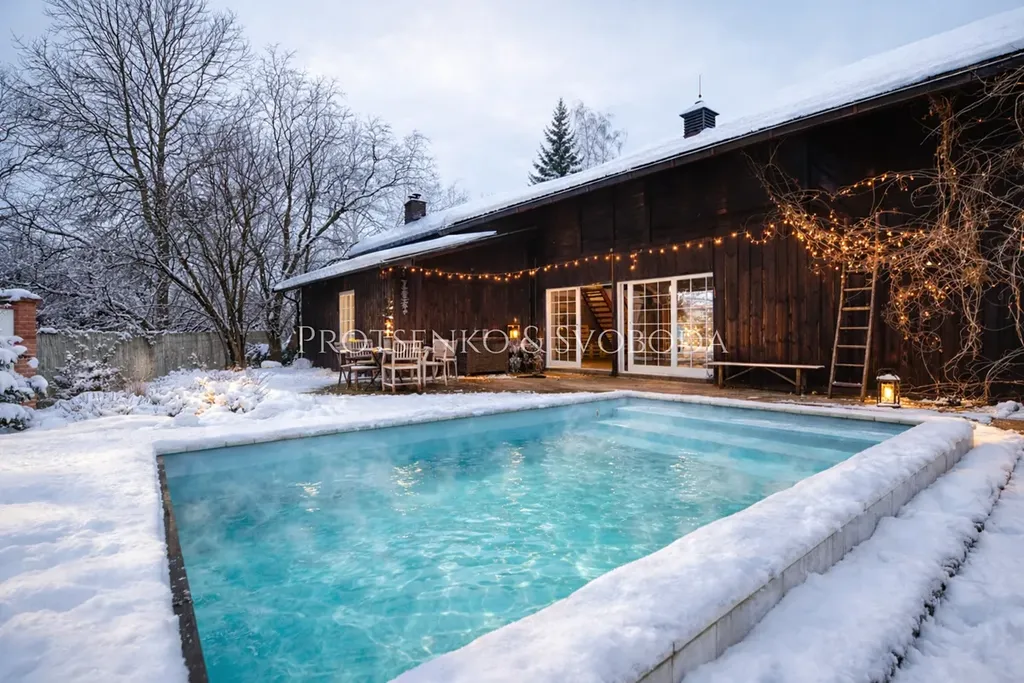 Za stodolou se nachází bazén, umístěný tak, aby poskytoval maximální soukromí a klid.