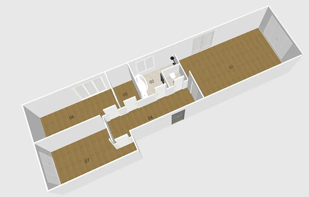 Byt zaujme velkorysou dispozicí se dvěma samostatnými ložnicemi a prostorným obývacím pokojem s kuchyňským koutem, z něhož je přímý vstup na terasu, stejně jako z každého pokoje. Nechybí prostorná předsíň, komora s přípravou pro pračku a sušičku, samostatné WC a prvotřídní koupelna, která je – stejně jako toaleta – v nadstandardním provedení.