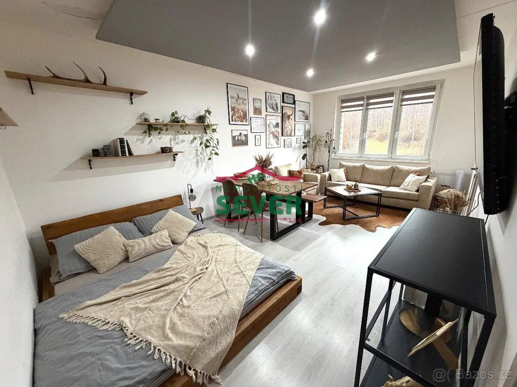 Nemovitosti SEVER vám zprostředkují prodej družstevního bytu 2+1, Chomutov, ul. Zahradní. Bytová jednotka po rekonstrukci z r.oku 2019, o výměře 61 m2, se nachází v pátém nadzemním podlaží panelového domu s výtahem a jeho součástí je lodžie a kovová sklepní kóje. Jsou zde plastová okna, žaluzie den a noc, nové rozvody vody, elektřiny, interiérové dveře, na zemi ve všech místnostech plovoucí podlahy. V rohové kuchyni je linka obložena dlaždičkami, elektrický sporák s keramickou deskou, digestoř, myčka, technické zázemí s přípojkou na pračku, skříňky. Koupelna s WC jsou společné ve zděném jádru. Je zde rohová vana, umyvadlo, závěsné WC, snížený strop s bodovými světly, celé v keramickém obkladu. Na chodbě a v pokoji jsou velké úložné skříně. Cena bytu je včetně zařízení a elektroniky dle dohody. Dům se nachází 5 minut od centra, na sídlišti je veškerá občanská vybavenost, parkoviště u domu. Anuita na bytě je splacena, nejde jej převést do osobního vlastnictví. V případě zájmu zajistíme optimální financování našimi poradci.