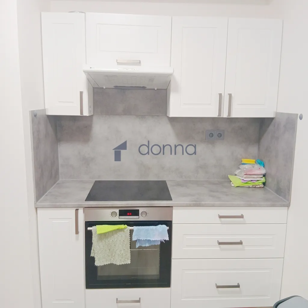 Byt je částečné zařízený nábytkem. Kuchyňská linka disponuje všemi potřebnými spotřebiči (lednice, trouba, varná deska, digestoř) a je umístěna v rohu obývacího pokoje spolu s jídelním stolem.