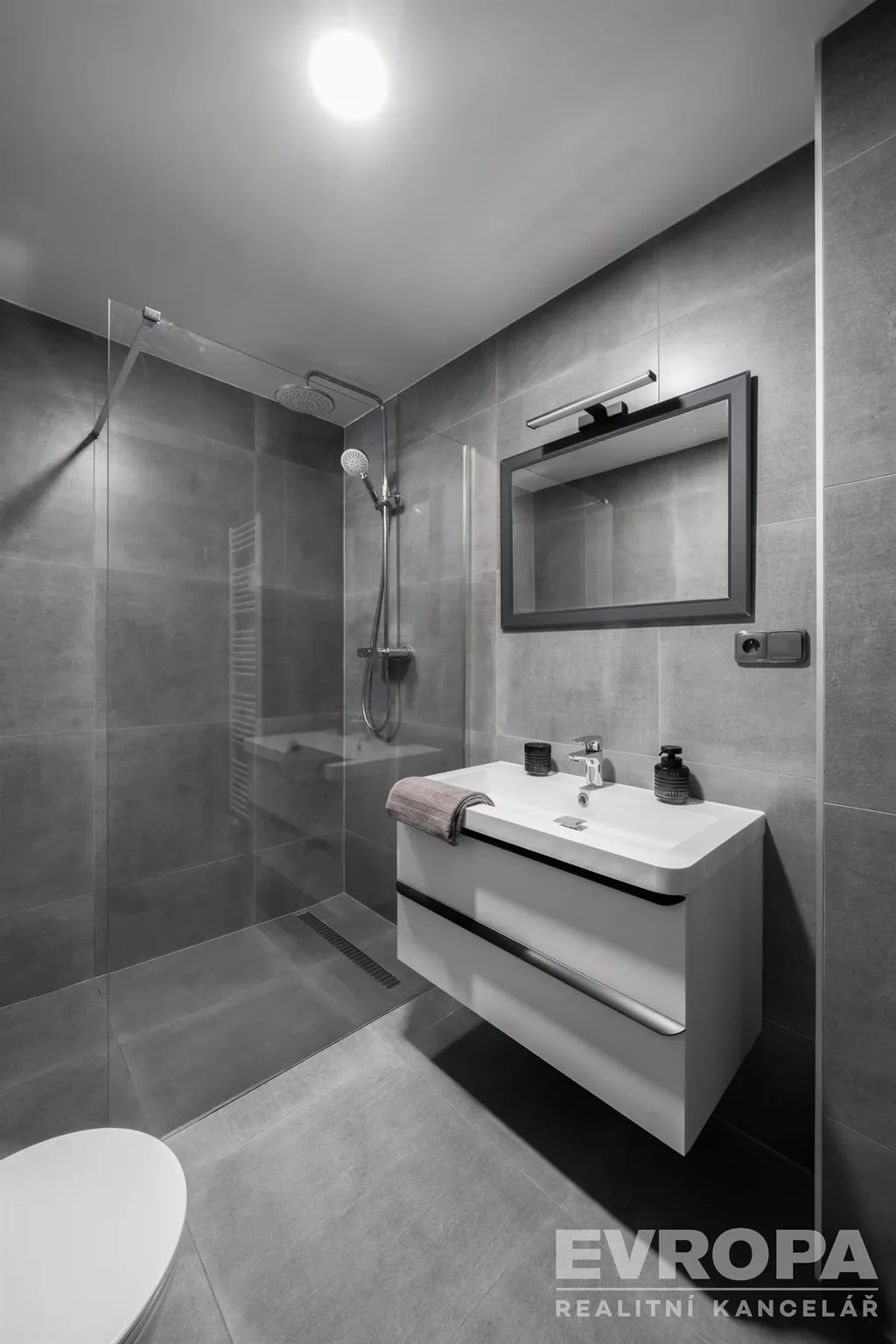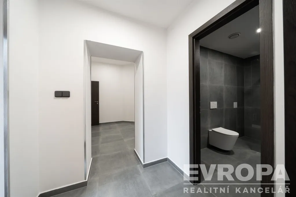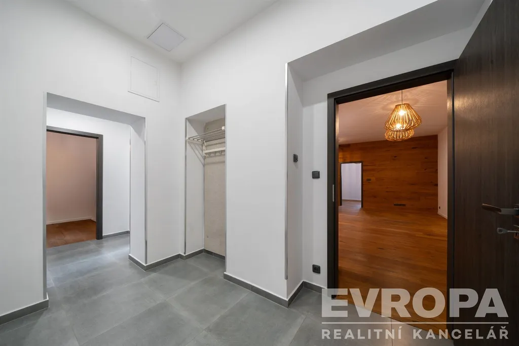 Za vstupními dveřmi je zádveří, ze kterého se vchází do koupelny se sprchovým koutem a toaletou, pokoje a chodby, která dále pokračuje do kuchyně spojené s obývacím pokojem a do dalšího pokoje (ložnice), ke kterému je samostatná plnohodnotná koupelna se sprchovým koutem a oddělenou toaletou. K bytu náleží prostorný sklep a dvě parkovací místa. Byt je po celkové rekonstrukci nové rozvody elektřiny vč. rozvaděče, rozvody vody i odpadů v plastu, dveřní obložky vč. dveří, nové podlahy (v zádveří, chodbě, koupelnách položena dlažba, v obytných místnostech kvalitní dřevěná podlaha). Součástí bytu je moderní kuchyňská linka vč. vestavěných spotřebičů (varná deska, el. trouba, myčka, vestavěná lednice s mrazákem). Okna jsou plastová s trojskly a směrují na severovýchod a jihovýchod. Součástí společných prostor domu je sušárna/kolárna. Za domem je k dispozici zázemí pro posezení / relaxaci.