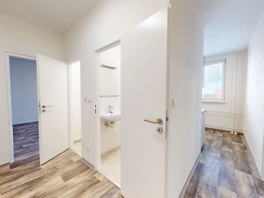Byt prošel kompletní rekonstrukci v roce 2021. Byt má vyzděné jádro, podlahy, rozvody, omítky, interiérové dveře. Koupelna s vanou a umyvadlem, toaleta je odděleně.