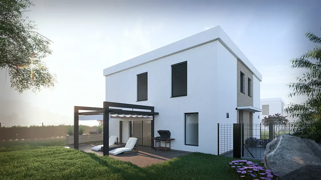 V přízemí se nachází prostorný a světlý obývací pokoj s kuchyňským koutem, který tvoří přirozené srdce celého domu. Z obývací části je přímý vstup na zahradu, ideální pro rodinné posezení či letní grilování. Dále je zde vstupní chodba, technické zázemí a samostatné WC.