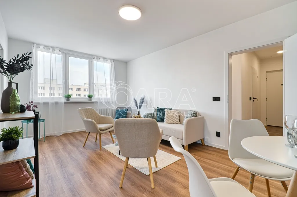 Srdcem bytu je prostorný obývací pokoj – místo, kde se potkává společný čas.